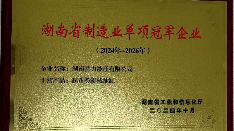 近日,公司憑借著起重類機械油缸的卓越技術(shù)實力和市場領(lǐng)導地位,正式被湖南省工業(yè)和信息化廳授予“湖南省制造業(yè)單項冠軍企業(yè)”榮譽,標志著我司成為該細分領(lǐng)域的標桿企業(yè)。