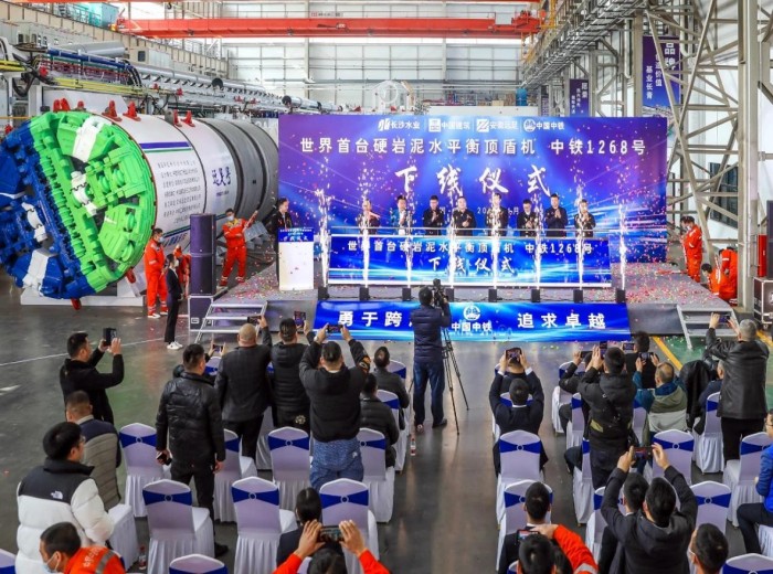 長沙水業(yè)、中建五局、安徽遠足、中鐵裝備聯(lián)合研制的世界首臺硬巖泥水平衡頂盾機“中鐵1268號”在中鐵裝備南昌基地成功下線。該設(shè)備采用全新的“頂管+盾構(gòu)”設(shè)計概念,融合了頂管機和盾構(gòu)機的裝備技術(shù)優(yōu)勢,采用“先頂管、后盾構(gòu)”的施工模式,可有效滿足城市地下管網(wǎng)建設(shè)中非開挖、小直徑、長距離、曲線頂進等特殊要求,對提升城市地下管網(wǎng)機械化建設(shè)具有重要意義。